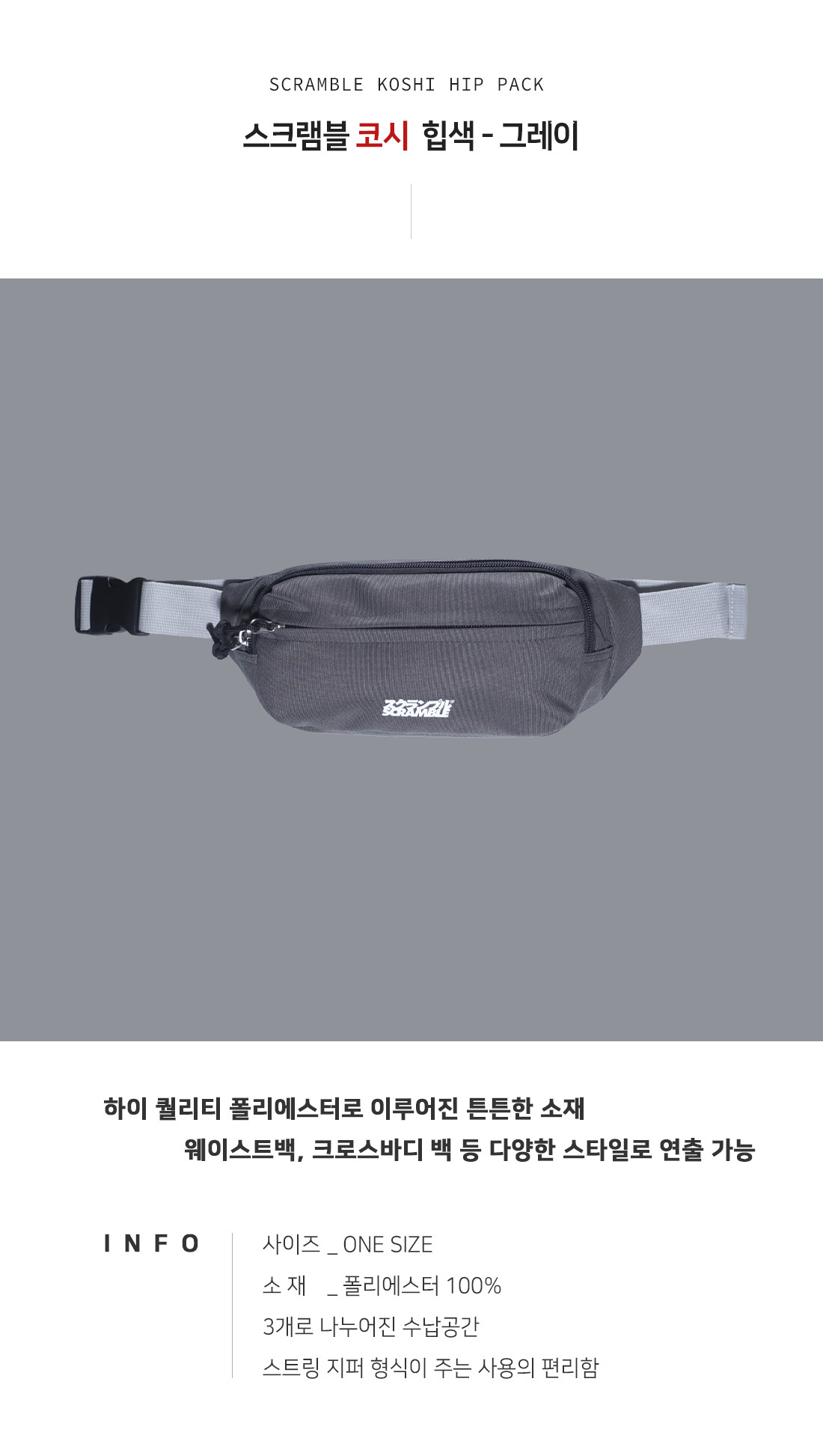 스크램블 코시 힙색 - 그레이 [교환/반품 X]