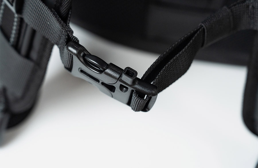 체스트 스트랩 버클에 비상시 사용 가능한 휘슬(호루라기) 탑재